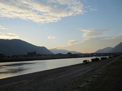 薄暮の犀川は、遠くの山並みと河原ののどかな景色が広がり、なかなかの情緒がある。