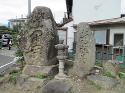 屋代南高校入口あたりに、巨大な筆塚と道祖神がある。