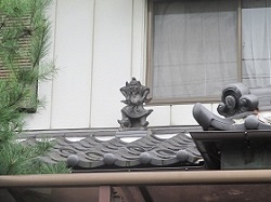 右折してすぐの家の屋根に鍾馗様がある。さっきの案内板によると、丹波島宿にはここを含め4箇所の鍾馗様の飾り瓦がある。