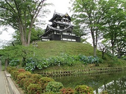 高田城は、慶長19年(1614)に越後松平忠輝の居城として築城された。天然の地形(関川、青田川)を効果的に利用した平城で、築城期間4ヶ月と短いのは、大坂の陣を控えて豊臣の重臣(加賀の前田、出羽の上杉)を牽制し、江戸の背後を固めたものといわれている。このためか天守閣も石垣もなく、代わりに平成5年に復元された三重櫓が城の象徴になっている。