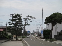 関山宿を抜け、国道に合流したところに、一風変わった背の高い木が一本だけ立っているのが印象的である。そこから国道の先の方を見ると、すぐ近くに食事処が目に入る。街道歩きをしていると、特に旧道ではほとんど食事処などなく、食事にありつけないことがしばしばあるので、食事処を見つけるとホッとする。