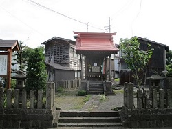 道標には、「右おゝしう道 左かゝみち」と記されており、ここで左に加賀街道、右に奥州道へと別れる。加賀街道は北陸道とも呼ばれ、新潟に向かう奥州道は北国街道とも呼ばれる。もともとは、本町7丁目交差点にあったものが昭和10年頃に今の場所に移されたとのことで、初めは、交差点周辺を探し回ったが、なかなか見つからなかった。仕方なく角の商店に入って尋ねたら、こちらにどうぞと店の中を通って裏口に抜け、この店の裏側にある神社にわざわざ案内していただいた。最近、時々同じように尋ねてくる人がいるので、慣れているんです、とのこと。