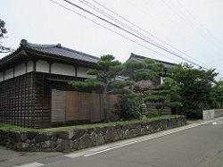 本敬寺を過ぎると、上荒浜、下荒浜、遊光寺浜、夷浜、西ケ窪浜と続き犀潟に至る。海側に続く砂防林の南側を行く街道には、よく手入れされた庭木が見事な民家が数多く並んでいる。