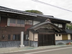 潟町郵便局の少し先右手に、古い構えの家の玄関脇に明治天皇潟町行在所跡碑が立っていた。