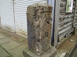 宿場の外れの枡形に、「右山みち 左奥州道」と刻まれた指で方向を示した石碑がある。矢代の渡しの先、見六橋のところにあった見六の道標でも見たが、このように浮彫りのものはかなり珍しい。