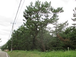 みごとな黒松の砂防林が列なるところに、240年前に地主の藤野条助が苦労して植林をしたとの説明板がある。彼が私財を投じて始めた松の植林が、高田藩の奨励を受けて規模を拡大し砂防林の基を作った。