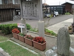 潟町駅へ向かう道の角に、「米山道」「左奥州道」と刻まれた道標が立っている。