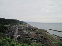 ここから坂を上って聖ケ鼻へ向かう。上り道の途中からは、鉢崎宿がよく見え、その景観は中山道の碓氷峠の途中の覗で見える坂本宿と雰囲気が良く似ている。