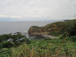 聖ケ鼻へ上って行くと、展望広場になっていて、弥彦、佐渡が遠望できる。ただし、ここから先の道は平成19年の中越沖地震で崩落し、行き止まりになっていて歩けなくなっている。