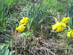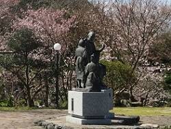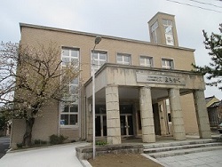 長岡からのバスは海岸沿いの出雲崎の街中に入る手前、小高い丘の上に建つ良寛記念館入口で停車する。ここで降りて記念館に向かうと、道路わきでスイセンとつくしんぼが春の訪れを告げている。