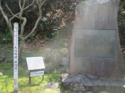 トンネル手前右が旧道になり、入口が小公園になっている。多くの石塔の中に一際高い「帆立観音堂」碑がある。46代孝謙天皇の時代(718~770)に泰澄大師が建立したという観音堂があったが、中越沖地震で観音堂は被災し取り壊されて、現在は石碑だけが残っている。