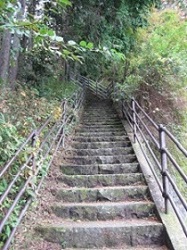 芭蕉句碑からちょっと国道を上って横断し階段を下ると上長坂の石畳道となる。