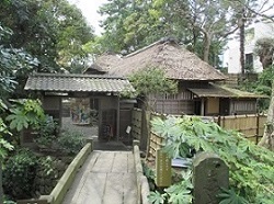 鴫立庵を出て、少し先の旧島崎藤村邸への案内板に従って奥まった細い路地を行くと、割竹垣に囲まれた藤村邸があった。藤村は昭和16年からここに住んで、2年後の昭和18年にこの家で永眠している。閑居簡素な佇まいは、藤村が大変気に入っていたというだけあって、ここにいるとなぜか居心地が良い。他に訪れる人もないようなので、受付の方としばし藤村を偲ぶ話をする。(もしかすると身内の方だったのかも)