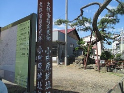 酒匂川から少し先の山王川を渡ると右手に山王神社がある。天正18年(1590)、秀吉の小田原攻め時、この付近は山王川を前にした小田原城の出城になっていて、激しい攻防が繰り広げられた。