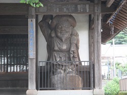 しばらく行くと、上板橋で国道に出るが、その手前に地元で親しまれている山王神社板橋の地蔵尊がある。永禄12年(1569)、香林寺九世の文察和尚が、湯本宿の古堂に祀られていたものを現在地に移奉した。本堂右手には直径1.5mほどの一木から彫られた恵比寿様が祀られている。