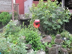駅からまずは旧東海道の国道の大磯駅入口信号のところまで出て、大磯郵便局の少し先の路地を入っていくと延台寺がある。仇討ちで有名な曽我兄弟の兄・十郎祐成と結ばれた虎御前が開いたお寺で、境内には虎御前供養塔、虎御石などがある。