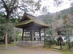 旧東海道の箱根路は、小田急箱根湯本駅から国道を少し戻ったところの三枚橋を渡り、県道を行く。道は急な上り坂となり、しばらくすると右側に戦国大名北条早雲の菩提寺の早雲寺がある。大永元年(1521)に2代目氏綱が建立したもので、山門を入った右手の清楚な茅葺き屋根の鐘楼に下がる梵鐘は、秀吉が小田原攻めのとき石垣山一夜城の陣鐘に使用したものである。