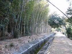 ここで桜の名所でもある三井寺に寄り道するため、小関越の方に向かう。三尾神社手前で、琵琶湖疎水の取水口から第一トンネルまで開水路が真っすぐ伸びている。