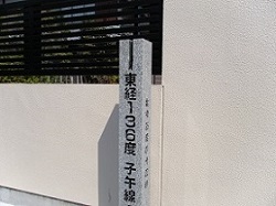 すぐ先の稲荷神社を過ぎると、「東経136度・子午線」と刻まれた石柱が立っている。東経136度は日本地図の中心線になるらしい。