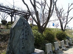 その先を左折して行くと、上鈎(まがり)池の堤防がある。 堤防の中程に足利義尚鈎の陣碑と多数の歌碑がある。