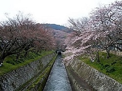 この岡崎桜回廊は、琵琶湖疎水の分線である。恥ずかしながら、これまで琵琶湖疎水のことをほとんど何も知らなかったが、旅から帰って少し勉強してみたら、大津の三井寺のところで見た疎水と、岡崎回廊、蹴上のインクライン、南禅寺の水路閣、哲学の道などがみんな琵琶湖疎水でつながっていると知り、あらためてその凄さに感動したりしている。