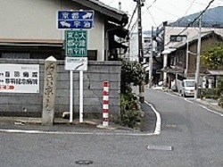 旧道は、急坂となり、三条通とは対照的にかなり細くなっている。これが京への最後の難所日ノ岡峠で、それなりの風情があるところなのだが、こんな狭い道にもかかわらず、抜け道なのか、車が驚くほど沢山通る。その上、結構スピードを出して走るので、危なくてしょうがないが、このような古い道が今も普通に使われているところが、古都らしくもある。