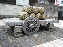 やがて再び三条通に合流すると、車石の轍の上に米俵を積んだ大八車のモニュメントがある。