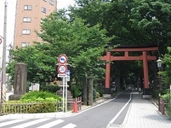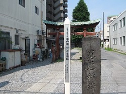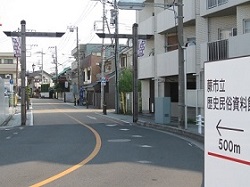 しばらく行った左手の慈恵稲荷神社のところが、市が立っていた跡である。毎月2と7の日、月6回開かれるので二七の市とか六歳市といわれた。