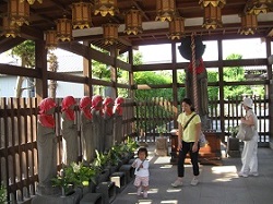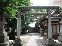 少し先に行って、街道から右の方の少し奥まった所に稲荷神社が鎮座する。拝殿の両側に「紅花商人中」と刻まれた石灯籠が2基並んでいる。桶川は紅花の産地で、取引も盛んであった。