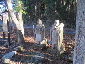 滝見不動堂前の、滝の様子がよく見えるところに、芭蕉と曾良の像が建っている。