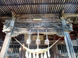 この二つの門を通ると、正面に見えるのが田村神社で、大元師(明王)の額がかかっている。