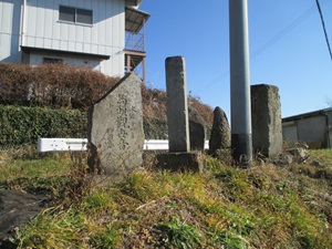 小塩江支所のところを右に行き、小塩江中学前を通って行く。しばらくは、ほとんど人気のないのどかな道が続き、ところどころで道端に二十三夜塔などの石塔が見られる。