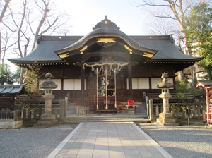 松明通りに並行する路地を北に向かい、突き当りの大通りを渡った宮の辻にある小公園は、市原多代女の生家があった所という。そこから少し西の神炊館(じんすいかん)神社に向かう途中、千本格子の見事な石井家の前を通る。須賀川市街には、ところどころに往時を偲ばせる旧家が見られる。