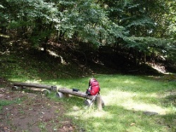 西餅屋も東餅屋同様、江戸時代は人気の立場として知られ、ここには4軒の茶屋があって繁盛していたという。 下り道で唯一の広々とした開放的な場所で、なんとベンチもあってお弁当を広げるにもってこいの場所だ。これを逃したら弁当を広げて食べられるところが無さそうなので、ここでおにぎりを戴くこととした。