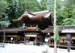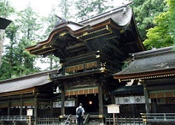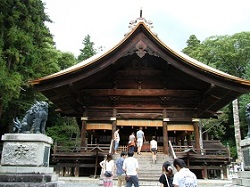 宿場の名前の由来になった神社らしく、立派な随神門、本殿を持つ。貞観元年(859)に開かれたと言われ、平安末期頃から武士の信仰があつかった。随神門は、天保14年(1843)の建立で、梁・桁回りに施された彫刻が素晴らしい。