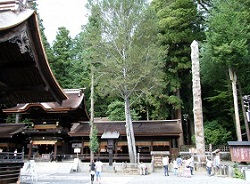 諏訪大社には本殿と呼ばれる建物がなく、代りに秋宮は一位の木を、春宮は杉の木を御神木とし、上社は御山を御神体として拝している。そもそも古代の神社には社殿がなかったという。