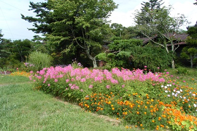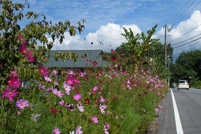 街道沿いには様々な花が咲いている。