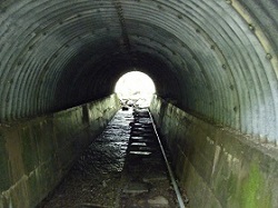 やがて旧道は沢水が流れる背の低いトンネルをくぐり、ビーナスラインを横断する。