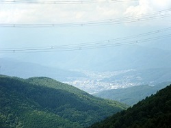 頂上からは、遠くに諏訪の町が見える。