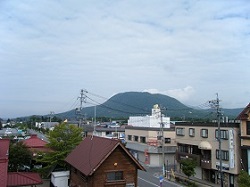 8:10軽井沢着。早朝のせいか人もまばら。駅からは軽井沢の特徴的景色となっている離山が良く見える。お椀を伏せたようなその形は、広重の東海道平塚に描かれている高麗山にどこか似ている。