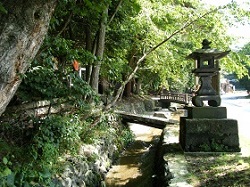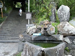 少し歩くとつい先ほど通ったところで見えていた慈雲寺の入口が見えてくる。参道階段左には庚申塔や三界萬霊塔が並び、右手には竜頭水口がある。寛政頃の作で、今でも滔々と清水が流れている。