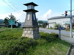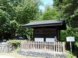 本来なら、旧道には、左右に塚が残る貴重な唐沢の一里塚があるのだが、残念ながら見られなかった。かわりに、旧道と国道が合流するところにあった唐沢一里塚碑を写真にパチリ。