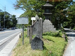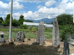 ずーっと歩道のない国道を歩いたところで、左の側道のところから国道下をくぐって右に出ると、正面に水戸浪人塚碑が置かれている。ここは、元治元年(1864)、水戸浪士(天狗党)千余名と待ち受けた高島・松本両藩連合軍が戦った古戦場にあたる。