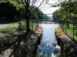 昭和42年に完成した千ヶ滝温水路は、浅間山麓の小諸市御影地区、佐久市岩村田地区を潤す用水の水温上昇施設として作られた。灌漑期間における取水地点で13.2℃の水が、この温水路で1.5℃上昇、その他水路による上昇分も含めて、最終的には18.2℃になって水稲の冷害防止に役立てられた。