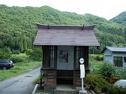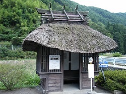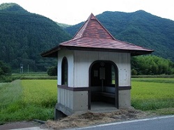 下塚原に入ったところで見かけた瓦葺き屋根のバス停で、いかにもレトロな雰囲気だ。