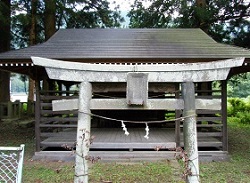 狭い参道に橋が架かっており、橋を渡って階段を上ると、左手に本殿がある。本殿は文明18年(1486) の創建と伝わり、重要文化財に指定されている。本殿の中には騎乗の男女2神像が安置されており、この先の望月牧の守り神と伝えられている。