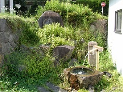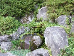 建物脇には湧き水が汲めるようになっている。この水は時間を経ても痛まないと言う話を聞いていたので、山中の飲み水としてペットボトルに補給する。