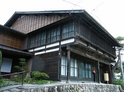 真山家住宅は、望月宿最古の建物で国の重要文化財に指定されている。問屋兼旅籠の建物は明和2年(1765)の火災の後の明和3年(1766)に再建されたもの。木造平屋建(一部2階)、切妻、桟瓦葺、正面2階外壁が1階より前に張り出している出桁造りで、中山道沿いでよく見られる形式である。
