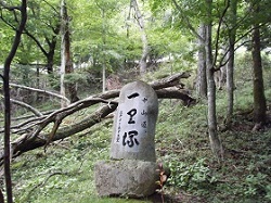 苔むした道が途切れて、しばらくすると広原の一里塚跡が見えてくる。日本橋から数えて52番目のもので塚跡が1基だけ残っている。