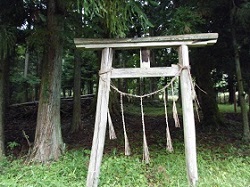ふたたび旧道に入ると、ここにも御柱で囲まれた道祖神がある。